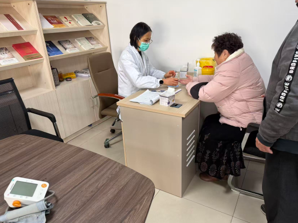1.13日早上活动现场,志愿者医生们以专业的态度和熟练的操作,为居民们进行空腹血糖测量。他们严格按照检测流程,认真为每一位居民采血、检测,并详细记录数据。在检测过程中,医生们还耐心地向居民讲解空腹血糖检测的重要性,告知大家正常的血糖范围以及血糖异常可能带来的健康风险。