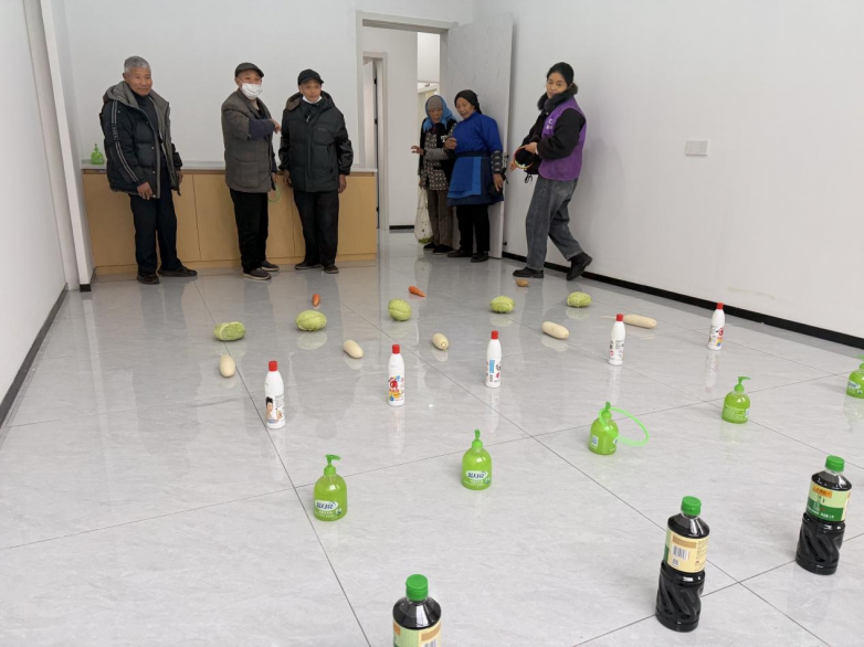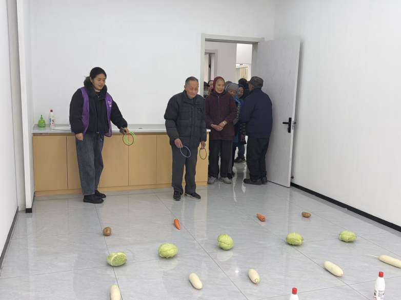 剪彩仪式后,趣味十足的套圈活动热闹开场。工作人员早已整齐摆放好鲜嫩蔬菜、实用日用品等丰厚奖品,老人们有序排队领取套圈,凝神瞄准、轻轻投掷,现场欢呼声此起彼伏。“套中土豆啦!这活动既好玩又实在,以后在家门口就有地方热闹了!”83岁的张大爷拿着战利品笑得合不拢嘴,邻里间的欢声笑语让中心充满暖意。