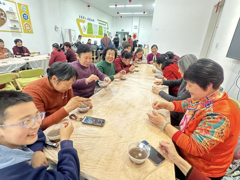 一个个圆润饱满、洁白可爱的汤圆相继成型,既承载着大家对阖家团圆的美好期盼,也寄托着对福寿安康的真挚祝愿。活动尾声,热气腾腾的汤圆新鲜出锅,软糯香甜、入口即化,暖心又暖胃。老人们围坐一桌,细细品尝着自己亲手制作的汤圆,香甜的滋味在口中化开,温暖直抵心底。