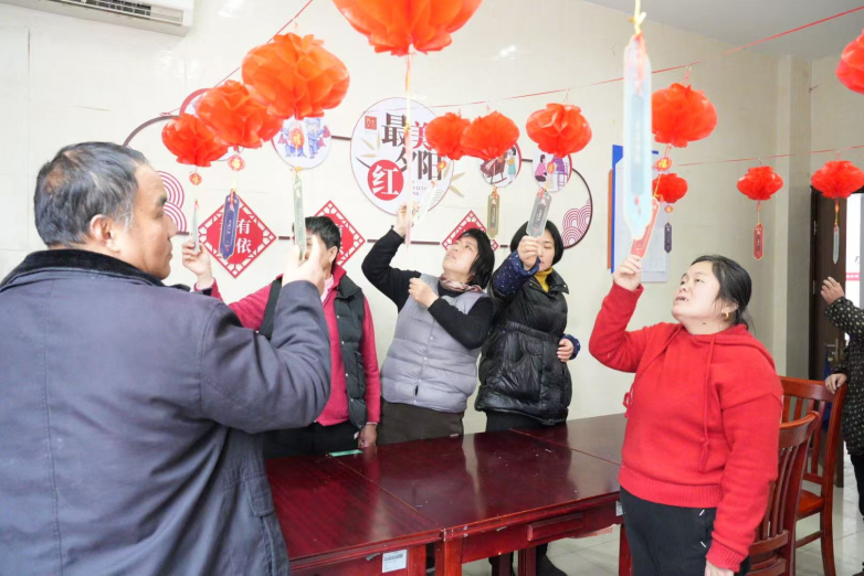 活动现场早已张灯结彩,红彤彤的灯笼错落悬挂,谜面涵盖字谜、成语、民俗、生活常识,难易适中,老少皆宜。居民们或驻足凝思,低头琢磨谜底;或三五成群,小声探讨思路;思维的火花不断碰撞,现场不时传来猜对谜底的欢呼声,处处洋溢着欢乐祥和的气息。社区工作人员与志愿者贴心引导,为行动不便的残疾居民解读谜面,让每一位参与者都能尽享猜谜乐趣。