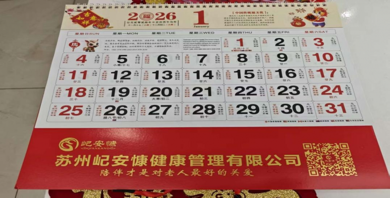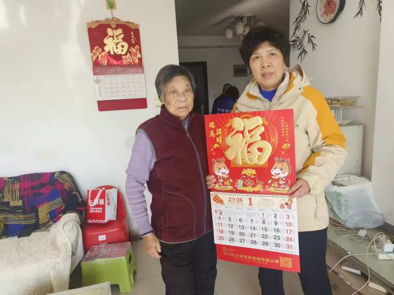 活动中,日照工作人员为每位老人送上定制版新年挂历,内页不仅标注重要节气,更印有健康养生知识和日照中心全体工作人员的祝福寄语。“这份礼物实用又贴心,每天翻日历都能想起你们的好!”独居老人葛婆婆感动地说。此外,日照中心人员还为行动不便的老人提供上门送挂历服务,确保关怀不漏一人。
