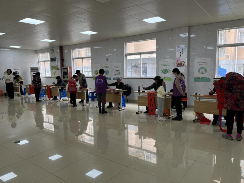 活动当天,社区活动室早早布置妥当,大红宣纸、笔墨砚台整齐摆放,温馨而有序。来自辖区书法爱好者志愿服务队。他们中既有年过七旬、笔力遒劲的老者,也有风华正茂、功底扎实的青年,大家凝神聚气,提笔挥毫,笔走龙蛇间,一幅幅寓意吉祥的春联、一个个饱满喜庆的“福”字跃然纸上。“春风得意启新程,马到成功展宏图”“邻里和睦添福寿,家园兴旺纳吉祥”“福满乾坤人安康,春回大地岁吉祥”,每一副春联都承载着对新年的美好期许,每一个福字都寄托着对生活的真挚祝福。